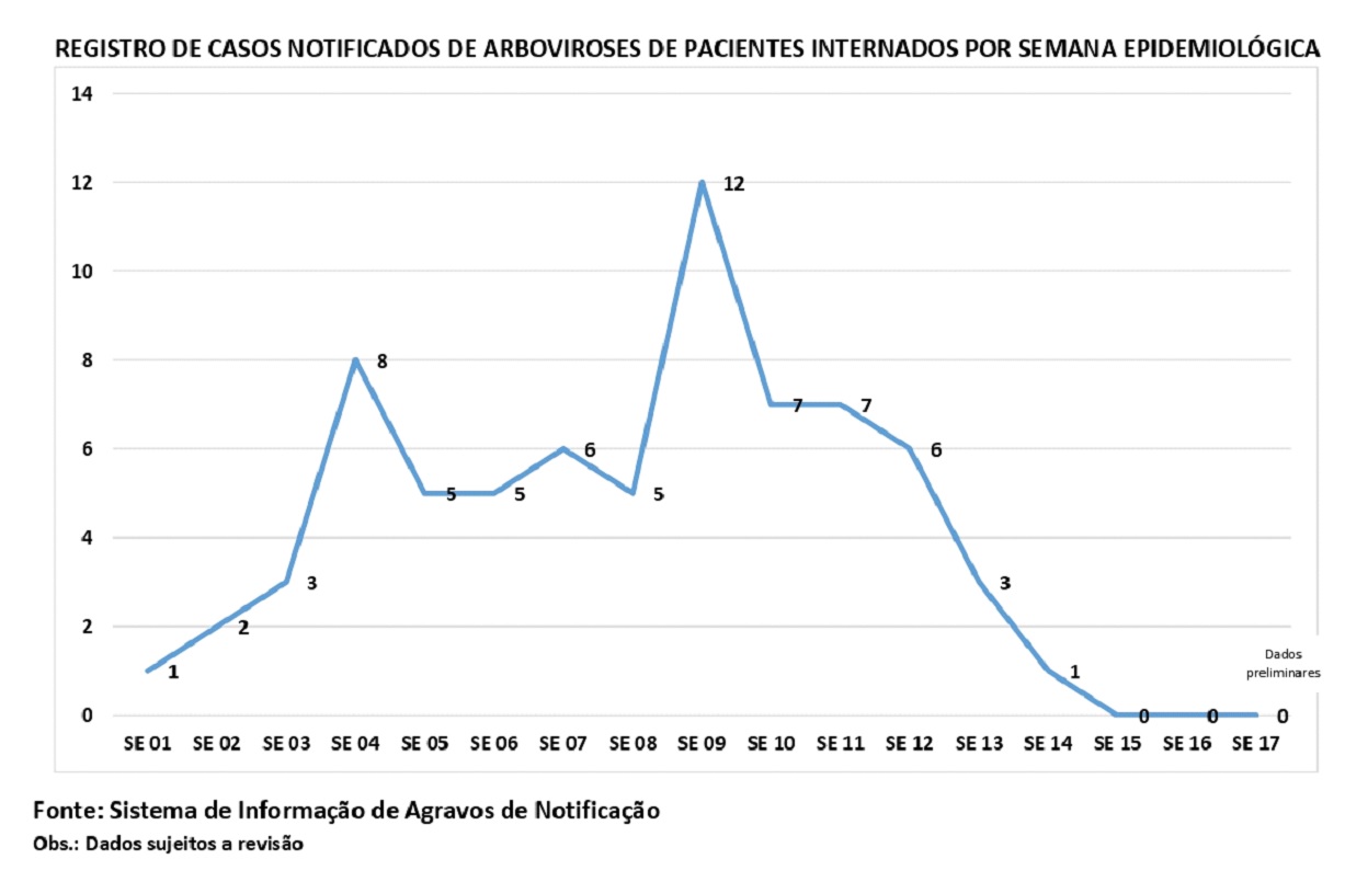 Confirmando a tendência de queda dos casos notificados das Arboviroses, a 16º Semana Epidemiológica registrou 33 casos das doenças causadas pelo mosquito Aedes aegypti.