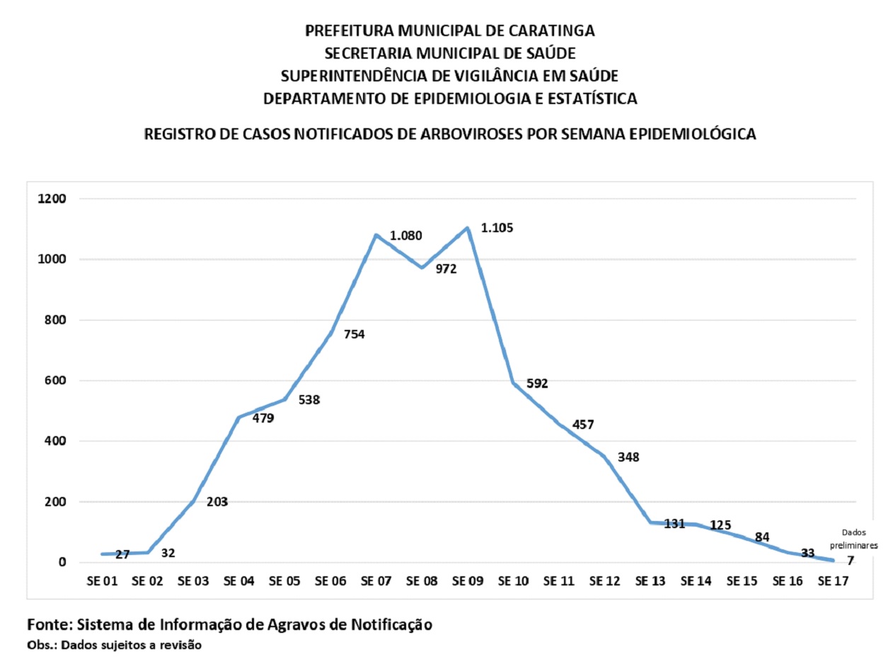 CARATINGA- O 12º Perfil Epidemiológico das Arboviroses do Município de Caratinga, aponta queda nas notificações das doenças transmitidas pelo mosquito Aedes aegypti nas últimas sete semanas epidemiológicas.