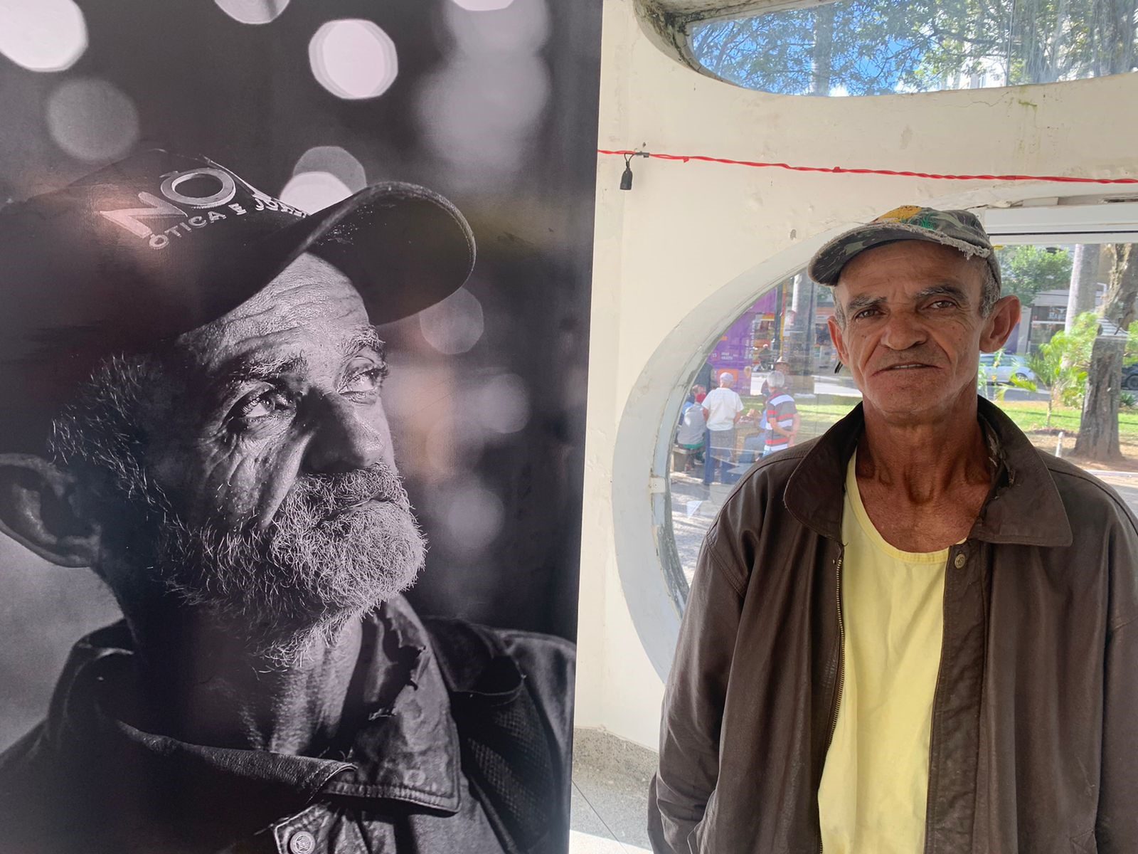 A reportagem esteve na exposição e foi recepcionada por um deles. Nelim de Souza Martins, 54 anos, em situação de rua, que de imediato apontou para uma fotografia e disse: “Aquele sou eu”.