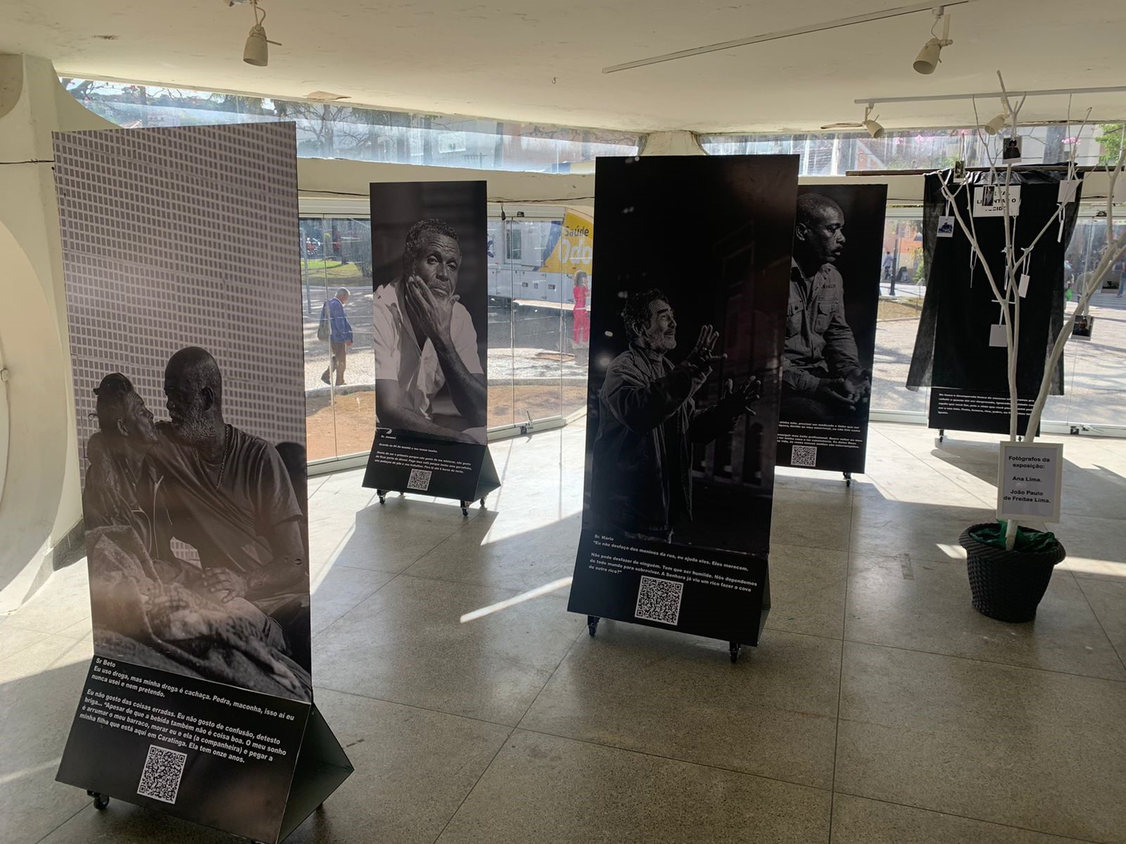 Um grupo de voluntários conversou com pessoas em situação de rua, colheu depoimentos e as fotografou. O resultado traz imagens fortes em painéis fotográficos e relatos surpreendentes. Em um QR Code, acesso a relatos de cada participante.