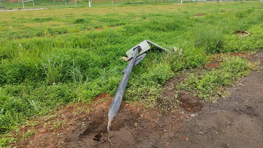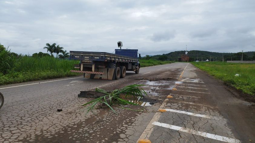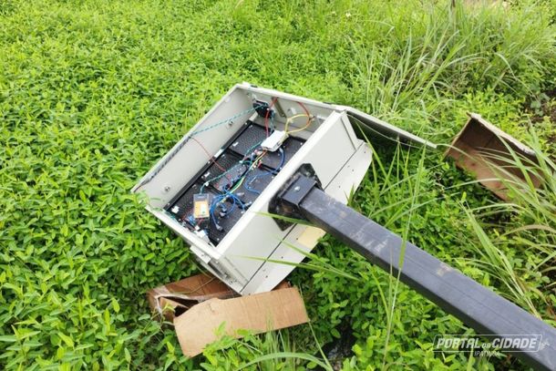 O equipamento amanheceu danificado outra vez nesta quarta-feira (8), na BR-458, próximo à entrada do clube Náutico Alvorada (Lagoa Silvana)