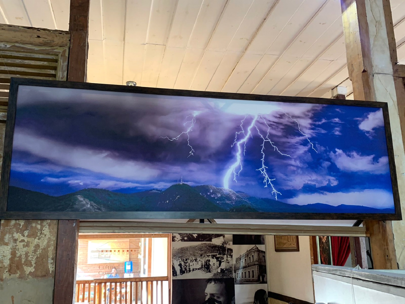 Questionado sobre qual fotografia que está em exposição tem uma história mais curiosa, ele cita um registro feito de sua própria casa, mostrando o céu de Caratinga em um dia chuvoso. “Vou falar da minha cidade, Caratinga. Quem é de Caratinga, pode estar morando nos Estados Unidos, fora, aonde for, vai ter sempre aquela saudade de querer lembrar de quando era criança. E eu fiz uma foto maravilhosa de um raio, que foi inclusive do terraço da minha casa, dezembro, período de chuva forte. Até eu chegar nessa imagem me deu muito trabalho. Curtam aí”.