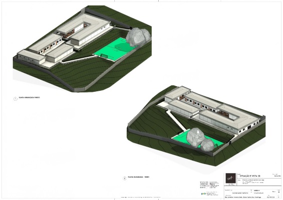 O pavimento térreo juntamente com uma parte coberta e outra parte aberta, terá uma quadra poliesportiva. O espaço será composto pelos seguintes ambientes: Hall de entrada; recepção; sala de Atendimento Especializado; secretaria; sanitário secretaria; diretoria; sala de coordenação pedagógica; sala de Professores; biblioteca; sala de informática dispensa; cozinha; refeitório; duas salas de aula; almoxarifado; quadra; dois Sanitários PCD; um sanitário coletivo masculino com seis bacias sanitárias; um Sanitário coletivo feminino com seis bacias sanitárias; e área de circulação coberta.