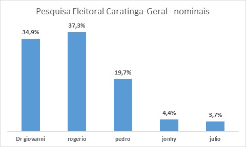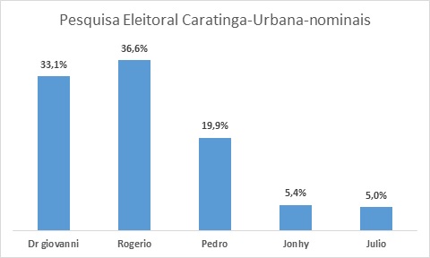CARATINGA- O DIÁRIO publica na edição desta sexta-feira (13), pesquisa eleitoral para avaliação dos candidatos à prefeito de Caratinga. Se comparado à pesquisa divulgada na última semana, os números ainda demonstram uma disputa apertada entre os dois primeiros colocados na intenção de votos.