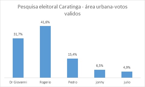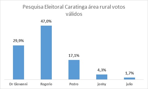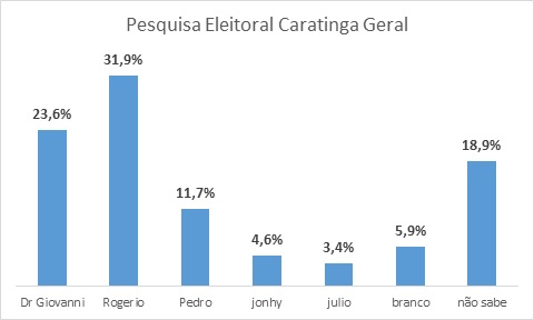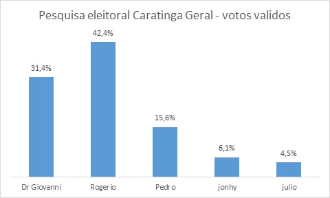Pesquisa quantitativa que consiste na realização de entrevistas pessoais, domiciliares e presenciais, conduzidas por profissionais treinados, com a aplicação de questionários estruturados a uma amostra representativa da população votante de 16 anos ou mais no município de Caratinga. Total de eleitores do município: 61.103. Fonte: TSE-Tribunal Superior Eleitoral – setembro/2024.