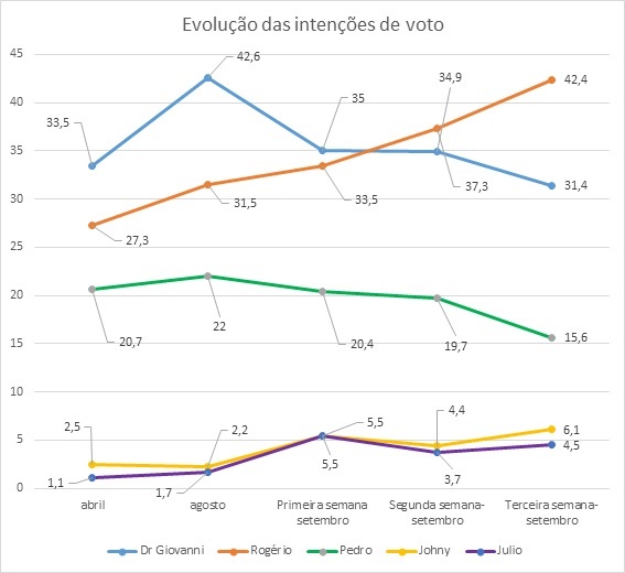 Rogério Soares tem 42,4% e Dr. Giovanni 31,4%, aponta nova pesquisa