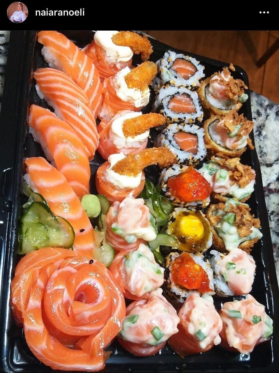 Naiara Sales conta surgiu o interesse por comida japonesa. “Eu já gostava muito. Então comecei a fazer em casa para a família mesmo. A gente sempre se reunia, juntava os amigos, as minhas irmãs. Fazia direto e eles gostavam muito. Certo dia eles me perguntaram: “Naiara por que você não vende este tipo de comida? Sua comida é maravilhosa, temos certeza que vai dar certo”. Então pensei, “será?” e eles afirmaram que daria certo. Então resolvi trabalhar com isso, montei um cardápio bacana e foi o maior sucesso, graças a Deus. Já tenho cinco anos e o pessoal gosta muito do tempero do meu sushi. Meus clientes falam que este é o diferencial”.