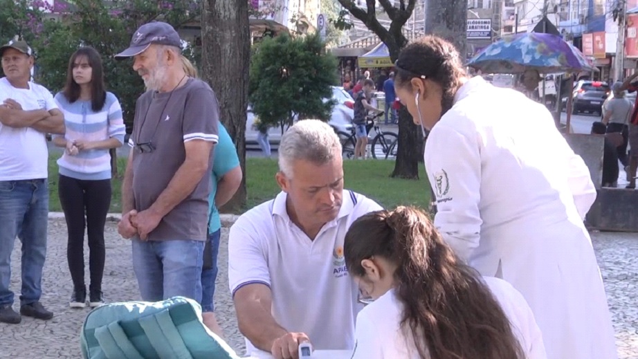 Pela primeira vez a dona Nilza Vieira, que é dona de casa, conseguiu um tempinho para parar em um estande onde serviços de saúde estavam sendo ofertados, gratuitamente, na área central de Caratinga. “Eu nunca havia participado. Toda vez que tem, eu passo perto, mas estou com pressa e acabo não parando. Hoje eu consegui [um tempinho] e estou muito satisfeita. Eu aferi a pressão, recebi dicas e orientações de cuidados com a saúde. Inclusive, depois desse atendimento eu vou até voltar a fazer minhas caminhadas porque é muito importante para manter a minha pressão sem alterações”