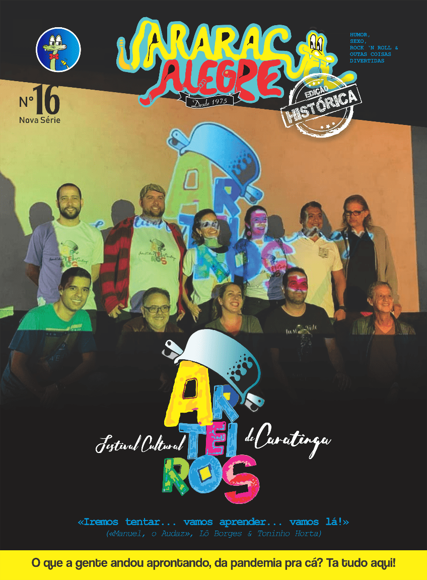 – Eu acho que a longevidade da revista se deve ao fato de A) ela não ter uma periodicidade fixa e, também, B) não ter um formato específico. Então vamos por partes: A) ela era publicada quinzenalmente na época do colégio Estadual, quando era o jornalzinho estudantil oficial da cidade (entre 1975 e 1977). De 1978 em diante passou a sair em ocasiões especiais, como sempre que tinha um “Tiapo tia tiapo”, férias escolares – quando todo mundo que tinha saído pra estudar fora voltava pra cidade, ou um “Caratinguense ausente”, coisas assim: se a turma antiga ia estar reunida novamente, a gente fazia uma J. A. pra “zoar” todo mundo. Depois, virou página do jornal A Semana, página do O Jornal de Caratinga, página da Revista Night… só no Diário que não foi pois aqui eu usava meu nome mesmo na coluna, era uma pegada diferente. Ela passou a sair como livros também, tipo de 3 em 3 anos a gente publicava uma coletânea em forma de livro. Então, de um jeito ou de outro, ela nunca deixou de ser publicada desde que nasceu em 1975, porém a não obrigatoriedade de estar nas bancas todo mês ajudou pra que ela vivesse até hoje. B) Sobre os vários formatos eu comecei a falar acima: jornalzinho, revista, livro, e acrescento que ela tem saído também como DVD, site, CD, filme e, especialmente, eventos culturais, como o “Arteiros”, o “Mestres e Gafanhotos” e outros que estão por vir… tudo é uma grande “Jararaca Alegre” ao vivo e a cores!