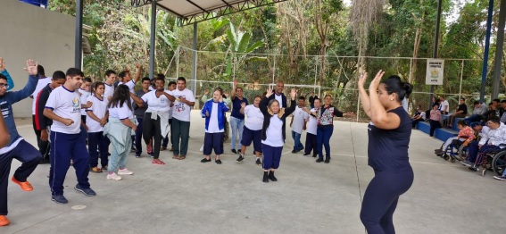 CARATINGA- Os assistidos da Associação de Pais e Amigos dos Excepcionais de Caratinga (APAE) receberam na segunda-feira (26), uma aula de dança comandada pela professora do Projeto Movimente – Nathália Brígida, com participação de 60 alunos da instituição.