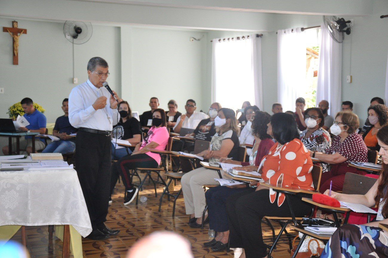 Após o café, dom Jorge Alves Bezerra fez sua reflexão: O Dom de Si. Á Luz da Encarnação do Verbo e do Mistério Eucarístico.