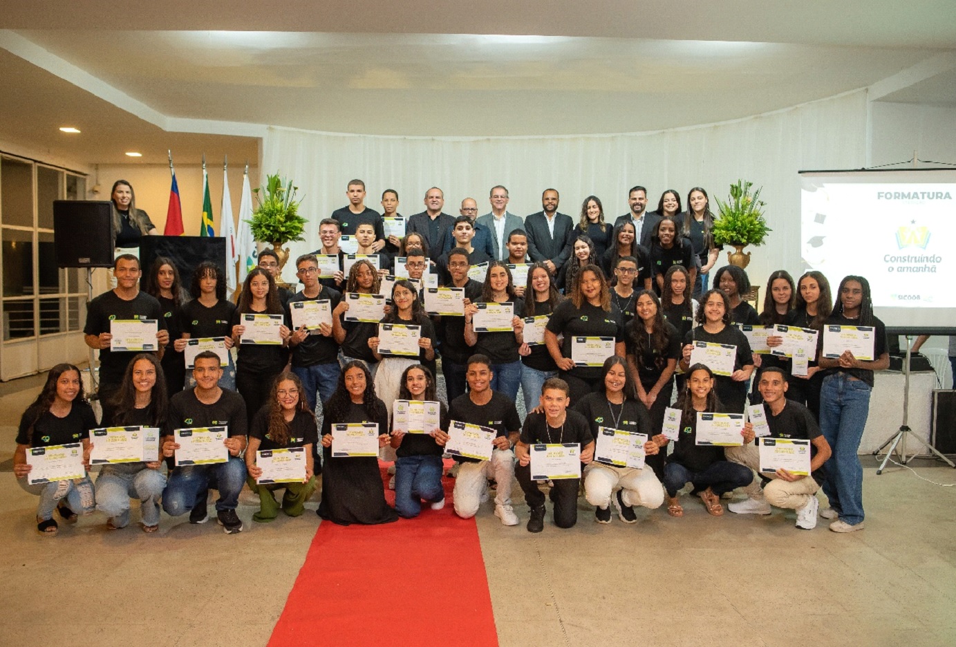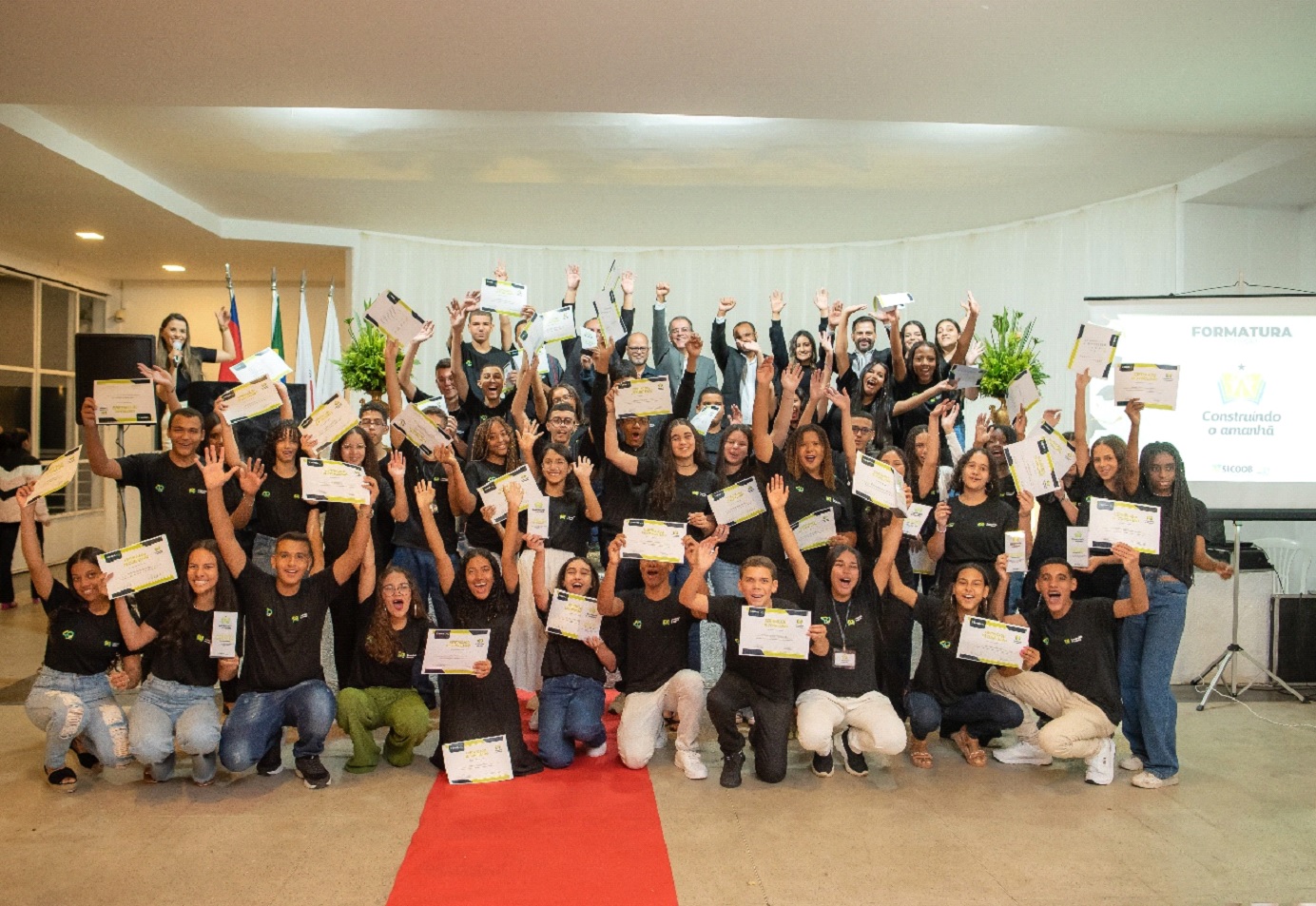 CARATINGA- Nesta terça-feira (8), 44 assistidos da Funcime participaram da formatura do projeto “Construindo o Amanhã” do Sicoob Credcooper. Eles foram qualificados no curso de auxiliar administrativo, com carga horária de 52 horas e receberam certificados.