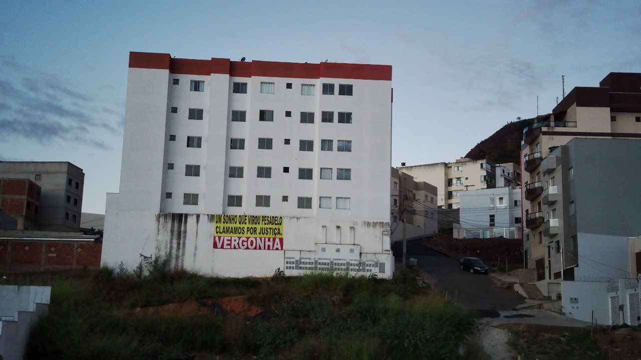 CARATINGA- “Um sonho que virou pesadelo. Clamamos por Justiça. Vergonha”. Esses são os dizeres de uma faixa que foi colocada em um prédio onde ocorreu um desmoronamento em dezembro de 2020, no Bairro Rodoviários. À época, famílias ficaram desabrigadas e há seis meses aguardam o pagamento de aluguel social por parte de empresários e um posto de combustíveis.