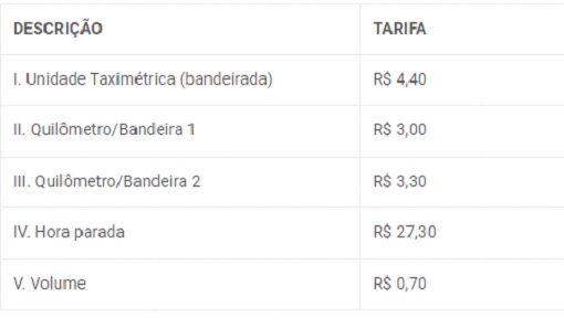 O último reajuste das tarifas de táxi ocorreu em março de 2015.