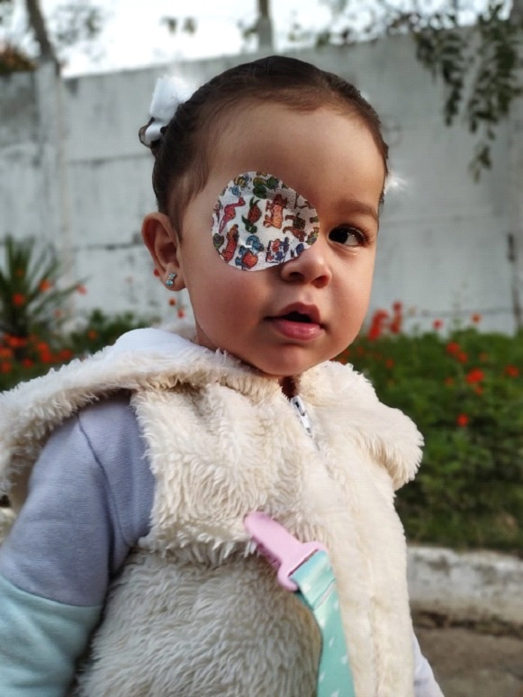Jéssica conta que desde que Maria Helena nasceu, eles já observavam alguns sinais de que havia algo de errado com a visão da bebê. “Ela apresentava um olhinho mais torto. O tempo foi passando e achávamos que era normal, recém-nascida, que ao longo do tempo ia desenvolver e melhorar. Mas, a cada vez que percebíamos, ficava mais juntinho o olho dela. Um fixava, o outro ficava de outro lado, depois trocava. Decidimos levar ela no posto do bairro e encaminharam para o oftalmologista. Lá ele deu o laudo de estrabismo, mas, em Caratinga não tinha médico à época capacitado para estrabismo infantil”.