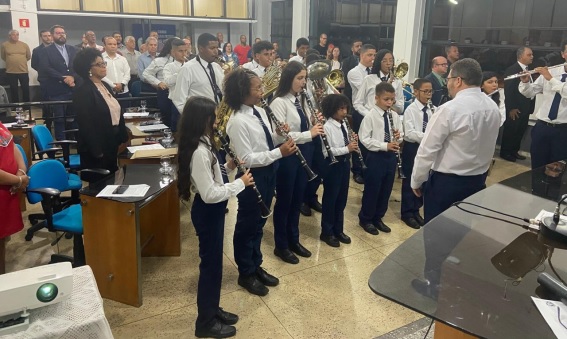 A banda Santa Cecília abrilhantou o evento executando o hino nacional e outras músicas.