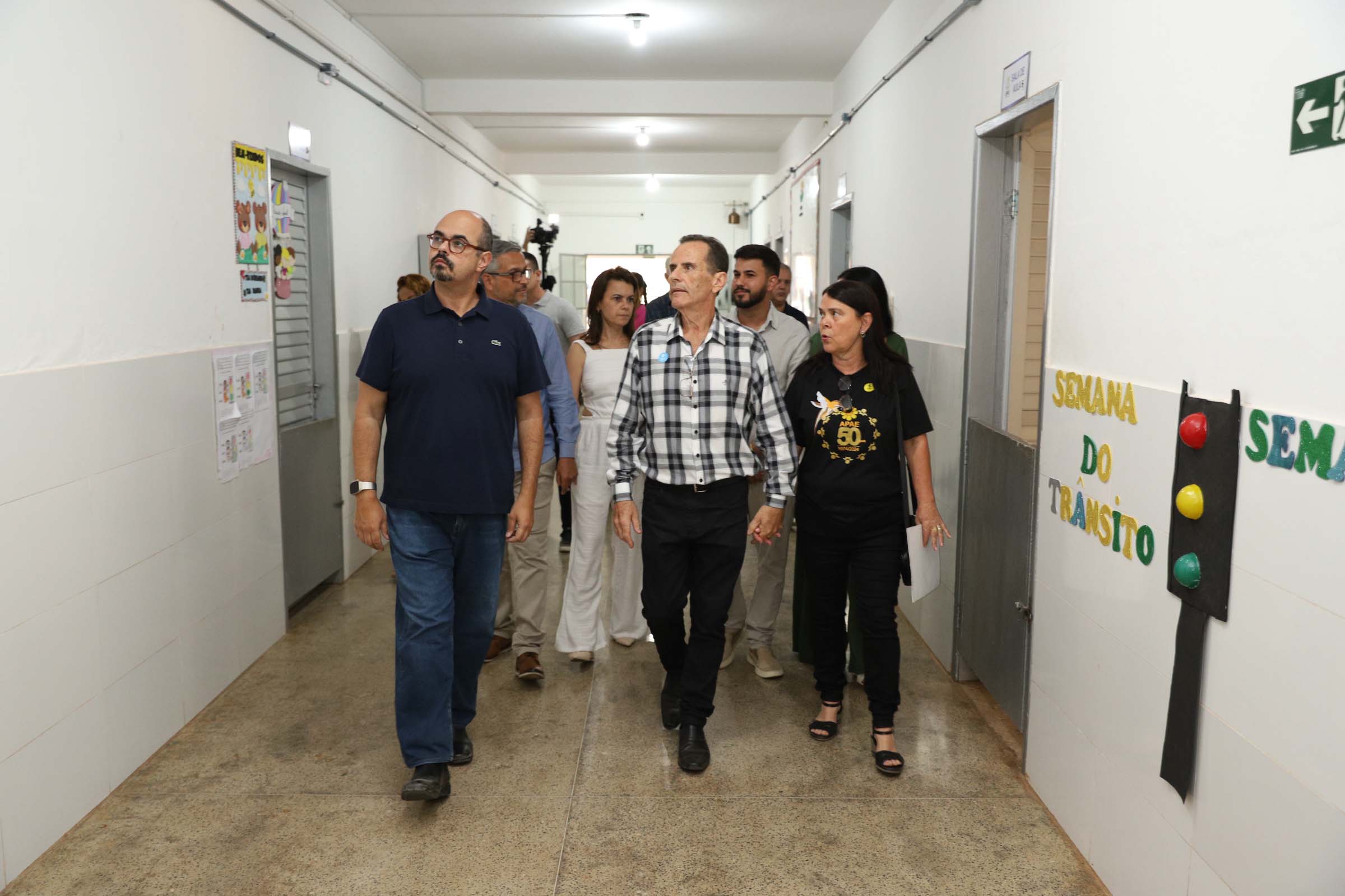 Ao lado do presidente da Apae do município, Luiz Henrique Bitencourt, Professor Mateus passou pelas estruturas da associação, como as salas de aula, a piscina terapêutica, a padaria e a quadra.