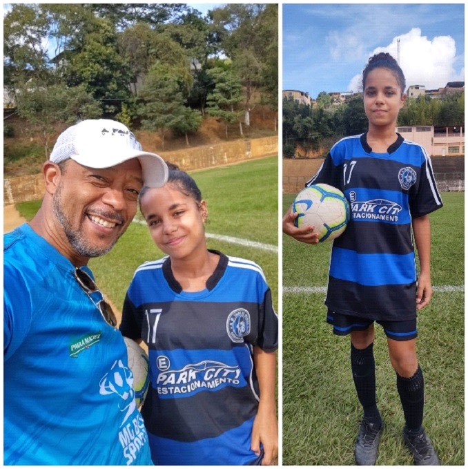 Este final de semana estive trabalhando nos jogos entre UAI de Inhapim e ADIM de Imbé de Minas, valendo pelas semifinais do Campeonato Regional das categorias Sub 15 e 17, promovido pela Liga Caratinguense de Desportos, fiz questão de abraçar a talentosa Ester Emanuelly, volante do time Sub 15 da ADIM. Jogando no projeto desde os 10 anos, aos 12, a garota ganhou espaço no elenco do professor Grosse, com qualidade técnica, disposição e sem medo de cara feia, Ester ganhou também o respeito dos meninos.