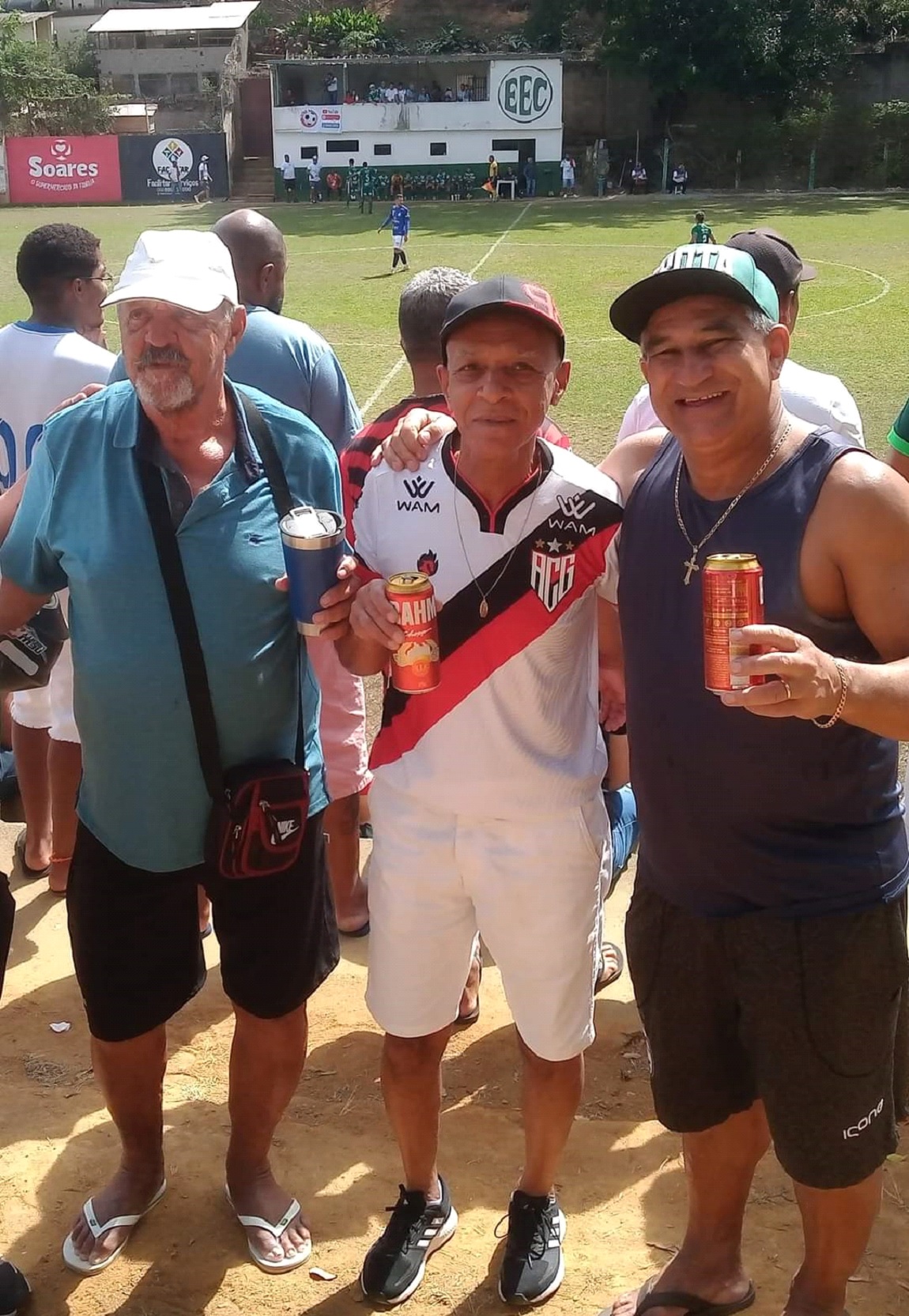 Uma das melhores coisas do campeonato é poder encontrar personagens que construíram com muito talento a história do nosso futebol. Essa foto reúne três lendas: Nélio, ídolo no Esporte Clube Caratinga, e considerado por muitos, o melhor jogador que já vestiu a camisa do Esplanada. Anísio, indiscutivelmente o melhor zagueiro que vi jogar. Campeão por onde passou. Toninho camisa 7, ídolo do profissional do Dragão anos 90, campeão pelo Esplanada em 2002.