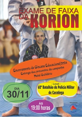 Que a Associação Korion faz um brilhante trabalho em vários núcleos, ensinado a arte do Tae-kwon-do, não é novidade pra ninguém. Que Mestre Marcelo Cardozo é a principal referência da modalidade, e o responsável pela formação de incontáveis mestres faixas preta também não. Mas, além disso, a Korion ao longo dos anos, tem demonstrado uma responsabilidade social que tem feito toda a diferença. Se valendo do enorme prestígio junto às famílias dos alunos, tem realizado durante o ano inteiro, uma animada gincana que promove interação entre os familiares e ainda ajuda quem precisa. Campanha de agasalhos, campanha de alimentos e agora pra encerrar o ano, campanha de arrecadação de brinquedos. Várias entidades da cidade serão beneficiadas, e com certeza, muitas crianças terão um Natal mais feliz. O evento de exame de faixa e encerramento da gincana, acontecerá no final deste mês, no 62° Batalhão de Polícia no Bairro Aparecida