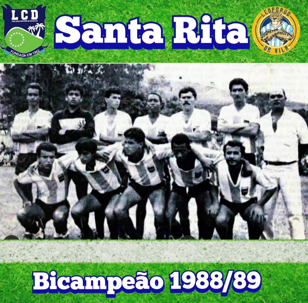 Santa Rita de Minas é uma aprazível cidade distante a apenas 10 km de Caratinga. Mas, não faz muito tempo, era um dos distritos da nossa cidade. Entretanto, sua história no futebol vem muito antes de sua emancipação. Celeiro de grandes craques de nossa história, o Leopardo da Vila faturou duas vezes o campeonato mais importante do nosso futebol. 1988 e 1989. Uma geração brilhante que encheu os olhos de quem gosta de bom futebol. Um timaço esse da foto bicampeão em 89: Roberto, Marcelo, Roberto, Amarildo, Cleider, Beline, Carlinhos Careca (técnico). Agachados: Mário da tia Rita, Adílson, Marquinhos, Chita e Luizinho. No dia 25 de fevereiro de 1989 no estádio Cel. Galdino Pires, o Santa Rita venceu o Anápolis por 2 a 1 e conquistou o título. Sem dúvida uma geração que marcou e deixou muita saudade não só nos torcedores do Leopardo, mas, em todos que são apaixonados por futebol. Sem dúvida quem teve a oportunidade de ver esses caras em campo, sabe que reunir outro time com tanta qualidade é quase impossível.