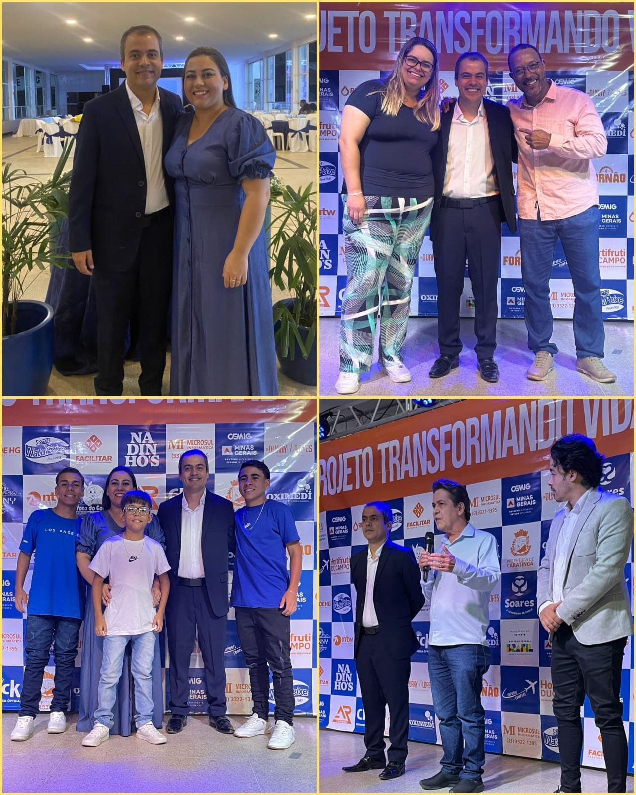 Uma noite pra entrar história do nosso esporte. Sem exagero algum, assim, enxerguei a noite de 30 de janeiro no Palácio de Cristal, Esporte Clube Caratinga. A Associação Amigos do Futebol e Esporte recebeu amigos e parceiros para celebrar o sucesso do projeto Transformando Vidas. Uma ideia que nasceu da vontade do empresário e desportista Istefam Castro Gomes, em criar um time para seus filhos jogarem. Porém, a ideia se agigantou, diante da consciência social do empresário. Assim, buscou conhecimento e pessoal competente, com experiência em projetos. Não tinha como dar errado. A três anos, o projeto cresceu, se tornou referência de organização. Através de leis de incentivo fiscal, o Transformando Vidas, atende a 140 crianças e adolescentes de 07 a 17 anos, em quatro polos: Bairros Santa Cruz, Aparecida, Esplanada e Limoeiro.