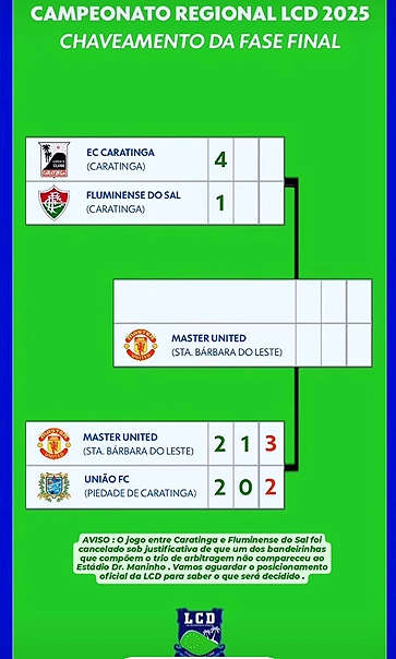 No final de semana, infelizmente, não tivemos, como esperado, a definição dos finalistas do Regional da LCD. A partida entre Caratinga e Fluminense, jogo de volta, não aconteceu pelo fato de o trio de arbitragem ter se apresentado incompleto, faltando um dos auxiliares. Só quem já esteve à frente de qualquer entidade responsável por promover algum campeonato sabe o quanto é difícil. Portanto, antes de sair criticando, apontando culpados pela lamentável falha, é preciso entender realmente o que aconteceu. Entretanto, falhas dessa natureza depõem contra a imagem do campeonato e, obviamente, seus organizadores. Por isso, é muito importante que a direção da LCD explique publicamente o que aconteceu. Caso contrário, abre espaço para que cada um pense o que quiser e saia contando cada um sua versão.