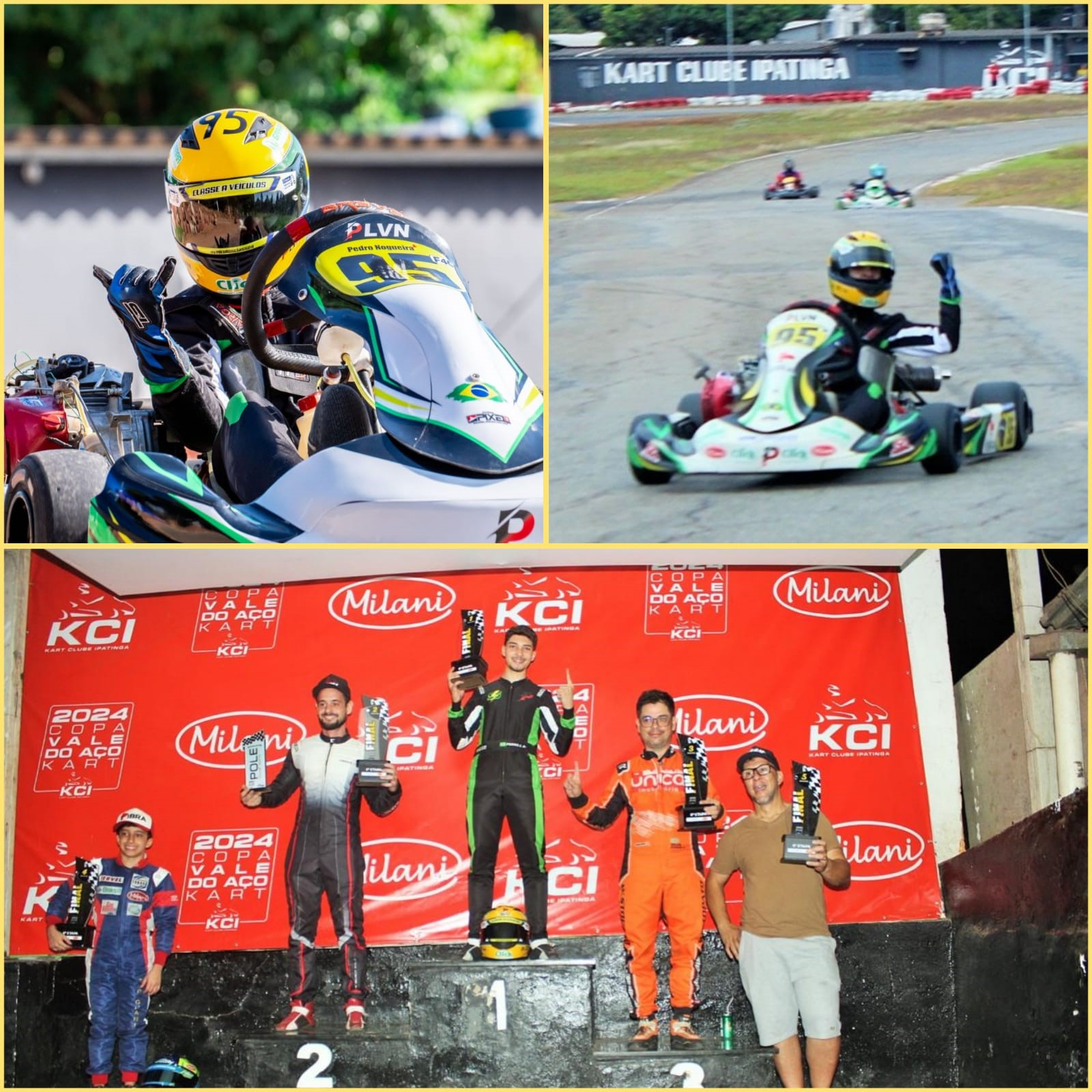 Conversando com o pai do piloto, ele me contou um pouco da ascensão meteórica do filho: “Rogério, o Pedro desde muito novo, com 3, 4 anos, já manifestava um interesse diferenciado com carros de corrida, sempre muito curioso e com a internet na mão logo encontrou a história de Ayrton Senna e se interessou ainda mais pelo automobilismo, ele foi crescendo e como em nossa cidade não temos esse tipo de esporte por aqui, ele foi pesquisando e em 2022 andou de kart pela primeira vez no Shopping de Ipatinga, em 11/2023 ficou sabendo que o kartódromo de Ipatinga iria reabrir para o kart indoor, que é o kart de aluguel, mas chegando lá verificamos que o kart de aluguel ainda iria demorar mais tempo para iniciar as atividades, mas mesmo assim alugamos um kart de um dos instrutores que estavam lá e o Pedro andou pela primeira vez no kartódromo de Ipatinga e como teve uma desenvoltura muito boa e foi convidado para participar da Copa Vale do Aço de Kart que aconteceria no ano de 2024 e assim ele começou os treinos semanais. A Copa Vale do Aço 2024 foi realizada em 6 etapas, começando em 04/2024 e terminando em 10/2024 contando com presença de pilotos de toda a região, pilotos com experiência de 5, 10, 15 anos de kart e ao final do campeonato, mesmo um novato naquele esporte e o menos experiente em relação aos outros pilotos, o Pedro sagrou-se Campeão da Etapa Final da Copa Vale do Aço de Kart 2024 e neste ano representará Caratinga disputando os títulos dos campeonatos Mineiro e Brasileiro de Kart que serão realizados na RBC Racing em BH e também em Penha (Santa Catarina), respectivamente”.