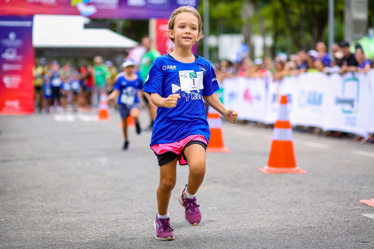 Aos sete anos de idade, garota segue os passos do avô e se destaca nas corridas de rua