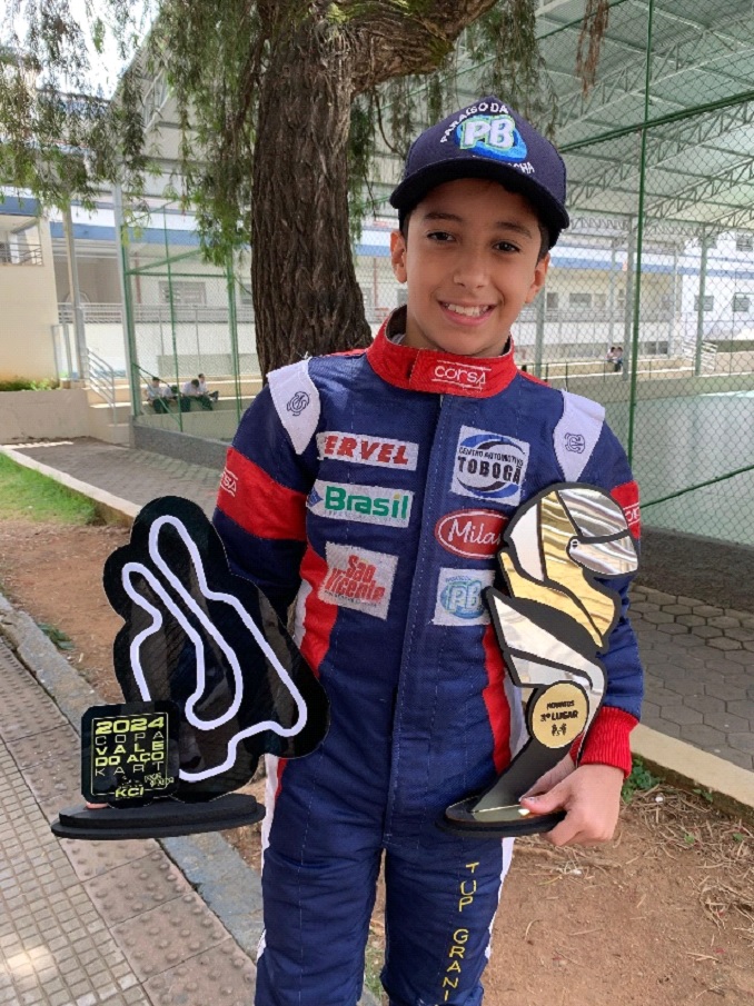CARATINGA- Rodrigo Batalha Carvalho Filho tem apenas 11 anos de idade e pilota como gente grande. O caratinguense participou no último final de semana da primeira etapa da Copa Vale do Aço de Kart e campeão competindo somente com pilotos adultos.