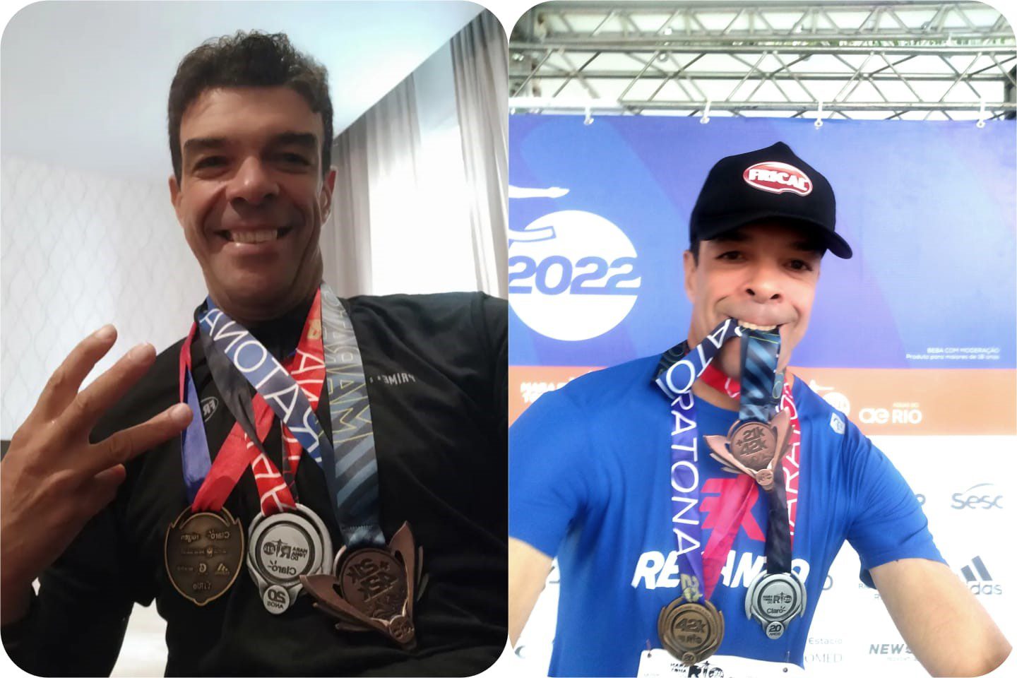Ele conquistou três medalhas e certificado de participação, concluindo os 42 km da Maratona no total de 3 horas e 12 minutos e os 21 km de Meia Maratona em 1h e 36 minutos com o total do tempo do Desafio de 4h e 49 minutos.