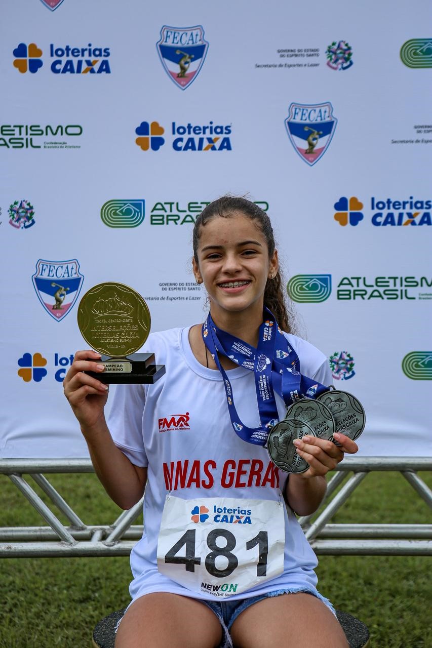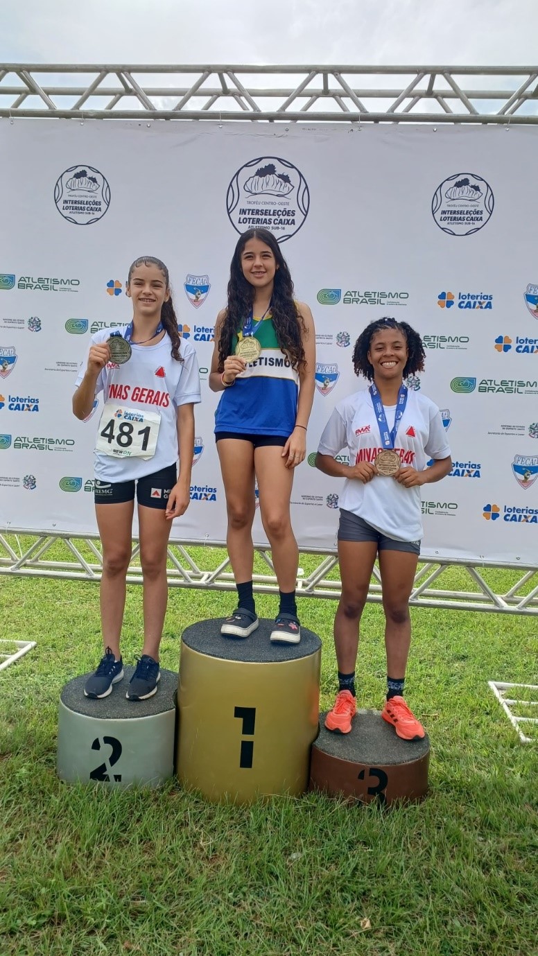 DA REDAÇÃO- A atleta Bianca Medina de apenas 13 anos continua sua trajetória vitoriosa no atletismo. A jovem atleta caratinguense esteve em Vitória, no Espirito Santo, no último final de semana (16 e 17) participando do Troféu Centro-Oeste Interseleções Loterias Caixa Sub-16 de Atletismo realizado pela CBAT – Confederação Brasileira de Atletismo e Federação Capixaba de Atletismo, sendo uma das principais competições de base da modalidade no país.
