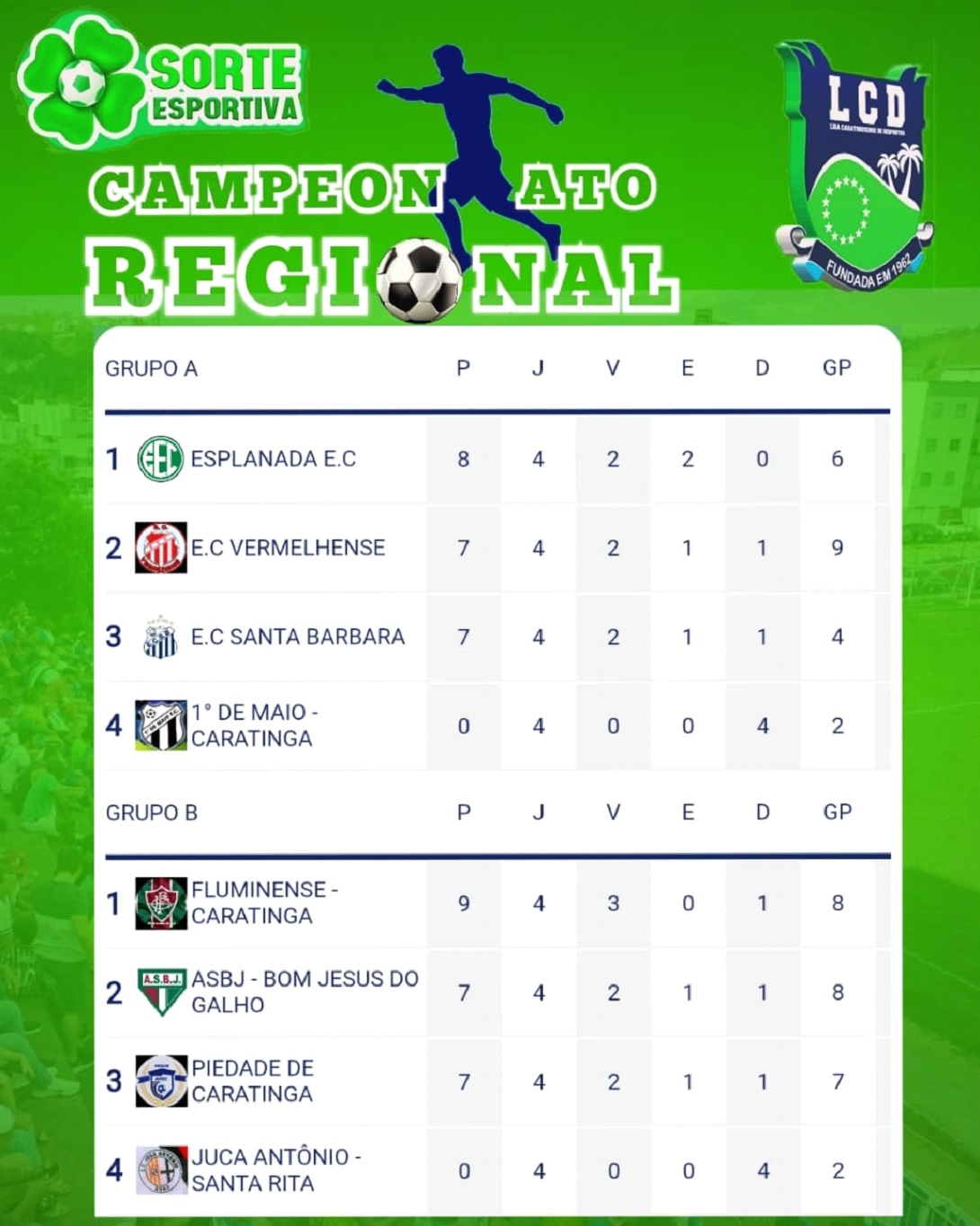 Esplanada lidera o grupo A, enquanto Fluminense do Sal está em primeiro no B
