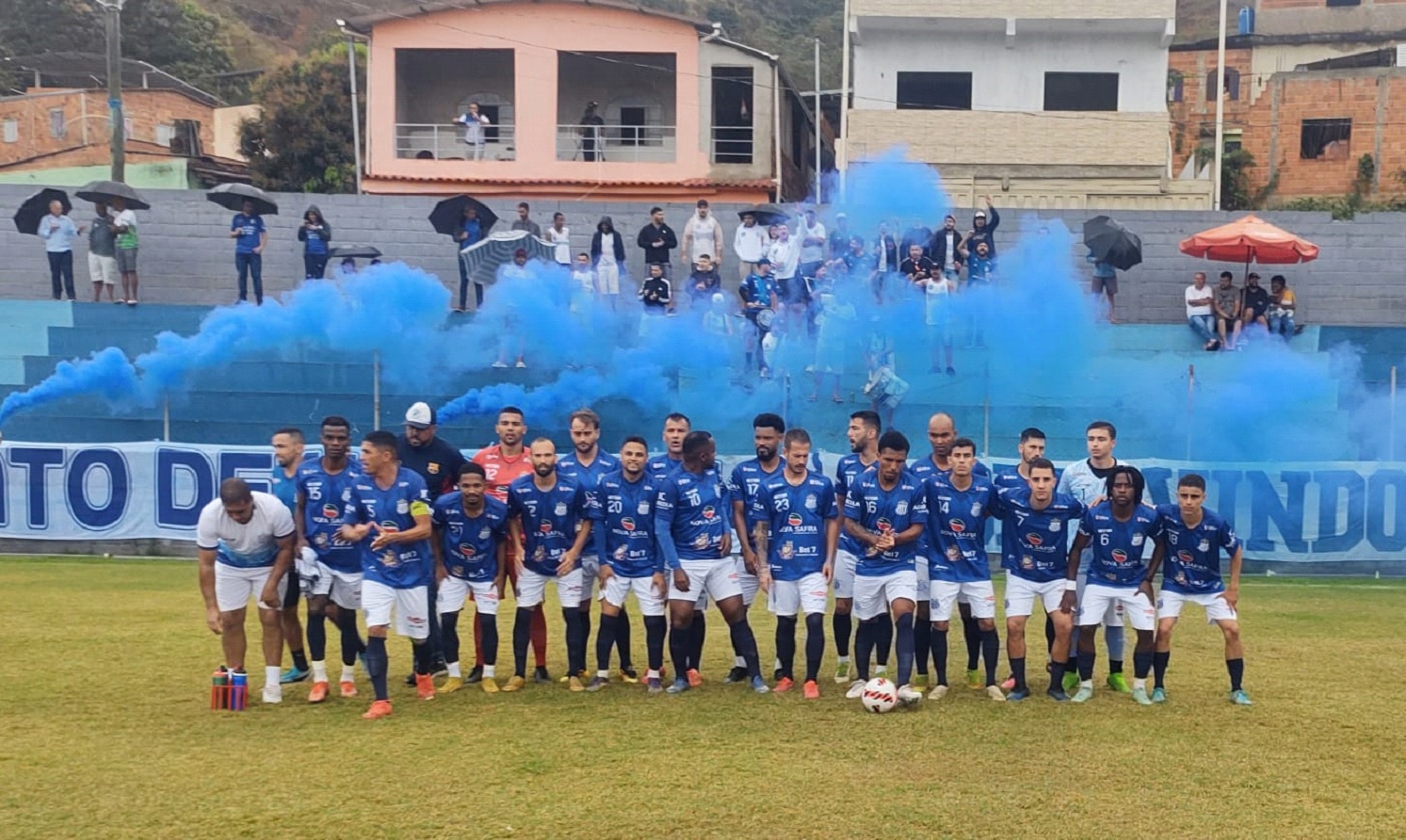 Nem mesmo a chuva fina e o frio impediram que as duas torcidas comparecessem em bom número ao estádio municipal Francisco Ferreira Maia, em Santa Bárbara do Leste. O campo de jogo se apresentava em boas condições para um grande jogo.