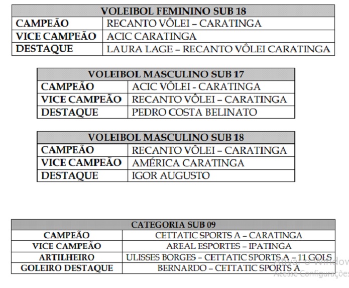 CARATINGA – Quatro dias de competições nas modalidades futsal e voleibol. 71 jogos disputados em no ginásio poliesportivo do Limoeiro, Caratinga Tênis Clube (CTC), Clube América (ginásio Alfeu Chaves). 42 equipes, mais de 600 atletas de 09 a 17 anos. Os dias 28, 29, 30 e 31 de março foram de festa do esporte, que trouxe à Caratinga, 14 delegações de nove cidades de diferentes regiões.