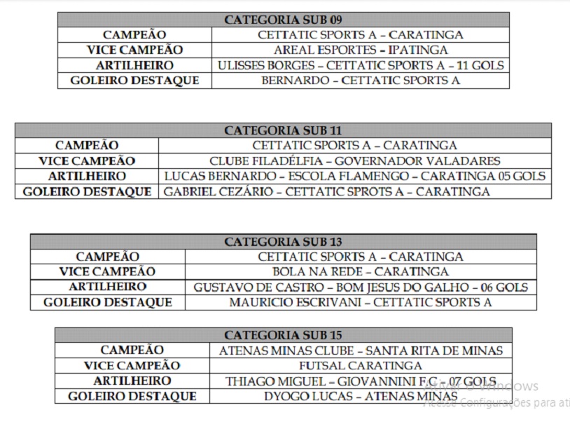O apoio da iniciativa privada é sempre de grande importância. “Afinal, por mais que a Liga Caratinguense de Desportos busque negociar os menores valores em premiação, não abre mão da qualidade nas medalhas e troféus, pelo segundo ano numa parceria com a Zanoello, fábrica renomada nacionalmente, presente em grandes eventos esportivos do Brasil. Por isso, a LCD agradece o apoio: Soares Supermercado, GOINN Hotel, Tinauto Tintas, Vereador Rômulo Gusmão. Um agradecimento a Prefeitura de Caratinga por ceder a Escola Municipal Bezerra de Menezes que serviu de alojamento para algumas delegações, e o Ginásio Poliesportivo, utilizado no segundo dia de competição”.