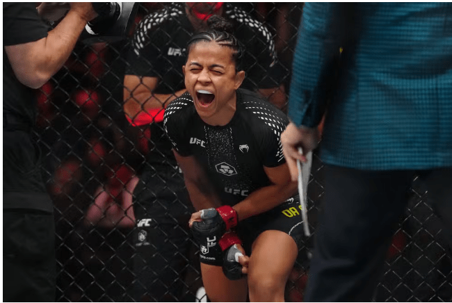 A estreia no UFC veio em junho de 2023, em Austin, no Texas, com vitória sobre a canadense Jasmine Jasudavicius, então considerada favorita. A atuação foi estratégica e marcou um dos pilares do jogo da brasileira: a defesa de quedas. “De seis tentativas, defendi todas. Trabalhamos muito isso”, relembrou após o combate.