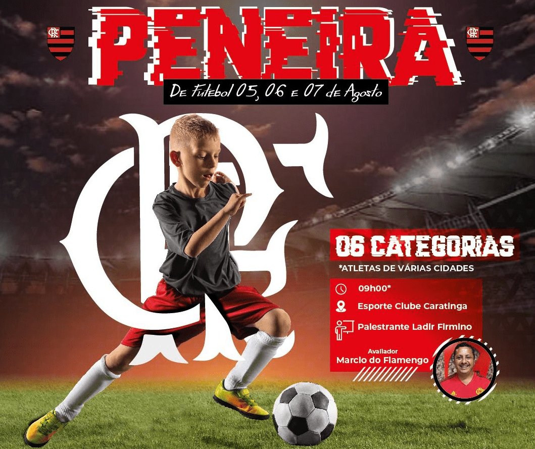 DA REDAÇÃO- Durante os dias 5, 6 e 7 de agosto, a Prefeitura de Caratinga, através da Secretaria Municipal de Educação, Cultura e Esporte em parceria com o Clube Regatas do Flamengo, realizará uma peneira para atletas de 9 a 19 anos.