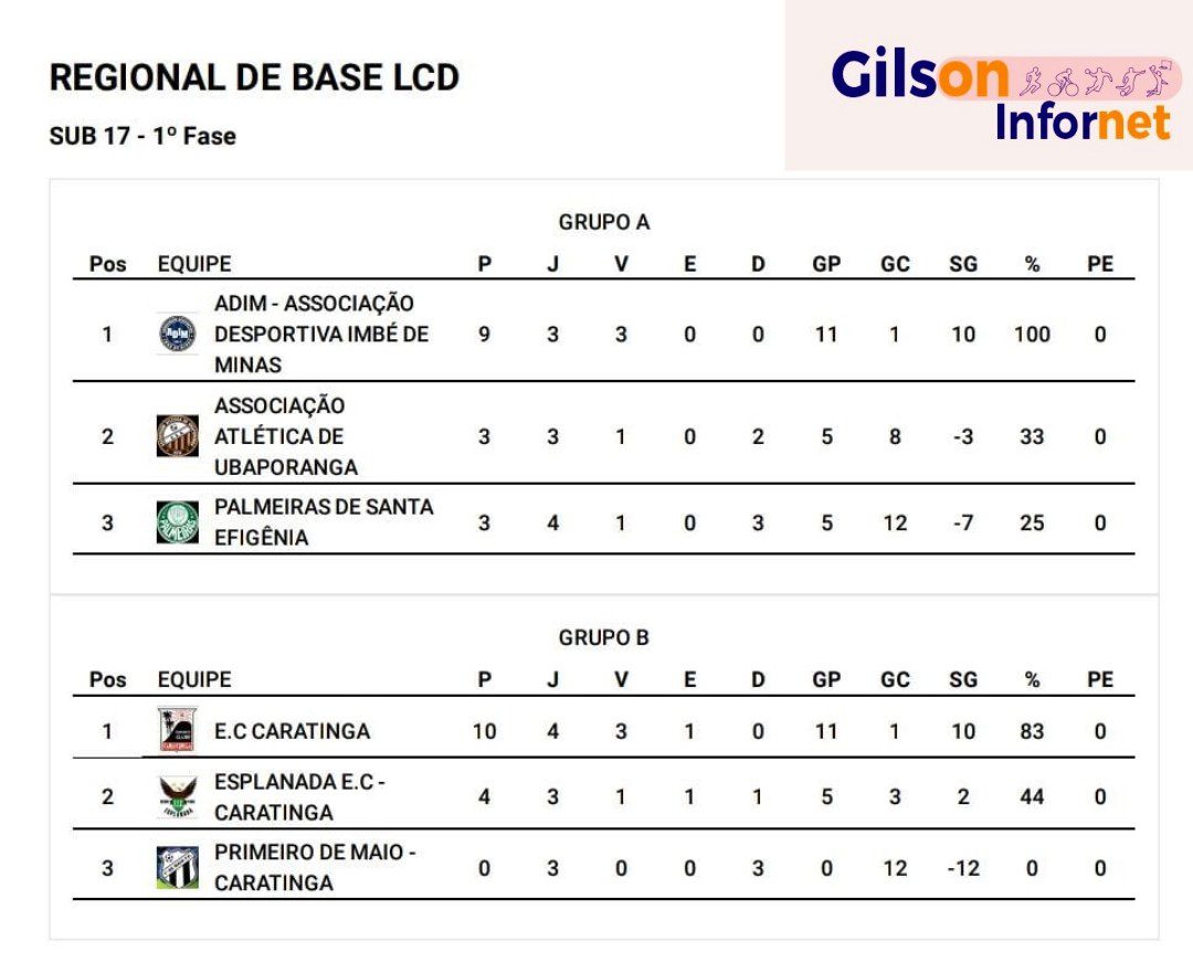 No estádio Manoel Ribeiro, campo do 1°de Maio, o Esporte Clube Caratinga também garantiu vaga vencendo os dois jogos contra o alvinegro. No Sub 15, o Dragão voltou a golear. Dessa vez por 16 a 1. Mostrando toda a diferença entre um trabalho de longo prazo, em relação a um projeto promissor que está só começando sob o comando de Vinicinho e Lucas. Aliás, ambos merecem muito mais apoio. No Sub 17, o Rubro Negro voltou a vencer. Dessa vez por 5 a 0 e também avançou de fase. Confira a classificação: