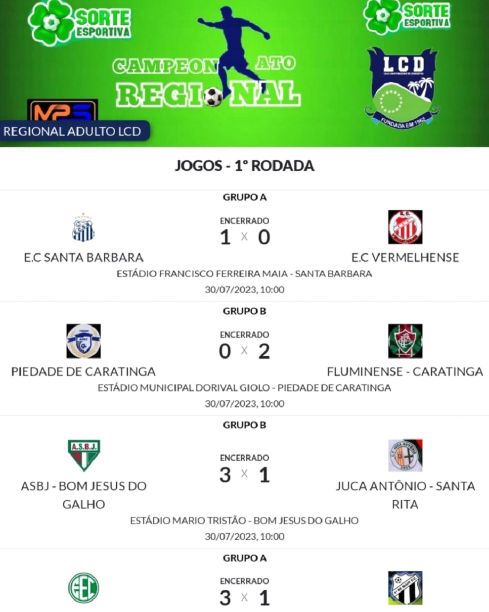 Santa Bárbara, Fluminense do Sal, ASBJ e Esplanada estreiam com vitórias
