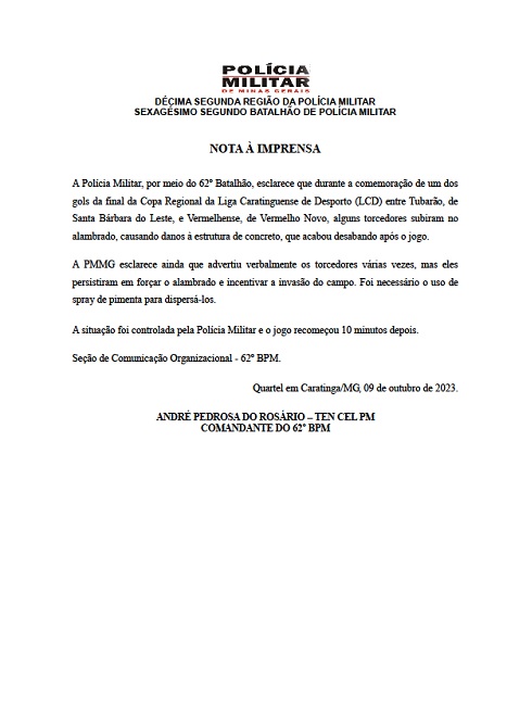 Alguns torcedores do Santa Bárbara, na área destinada a eles, começaram a entoar cânticos provocativos a Polícia Militar. Os ânimos se exaltaram, em determinado momento, um dos policiais fez uso de um spray de gás. Jogadores do Tubarão e comissão técnica, preocupados com filhos e esposas na torcida correram em direção ao alambrado. Minutos depois, situação controlada. E o jogo recomeçou.