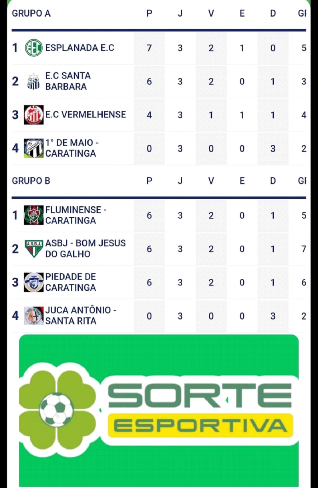 Vermelhense, Piedade de Caratinga, Esplanada e Fluminense do Sal venceram seus jogos