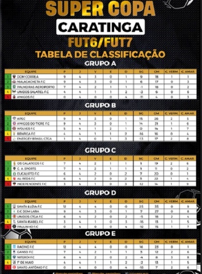 CARATINGA- A quinta e última rodada da fase de classificação da Super Copa Caratinga Fut6/Fut7 se encerrou na última sexta-feira (3).