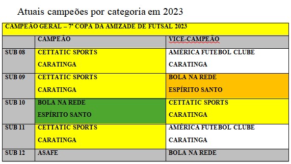 O campeão geral em 2024 será definido entre as categorias oficiais da competição (sub 08 a sub 16)