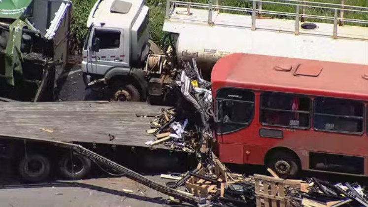 A batida aconteceu no km 430 da BR-381, no distrito de Ravena, em Sabará. Cinco veículos se envolveram no acidente: três caminhões, um ônibus e um carro.