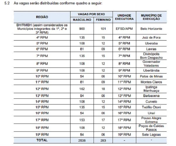 A prova objetiva contém as disciplinas de Língua Portuguesa, Literatura, Noções de Língua Inglesa, Noções de Direito e Direitos Humanos e Raciocínio Lógico-Matemático. Para mais informações, os interessados podem conferir o edital no site www.policiamilitar.mg.gov.br/site/crs.