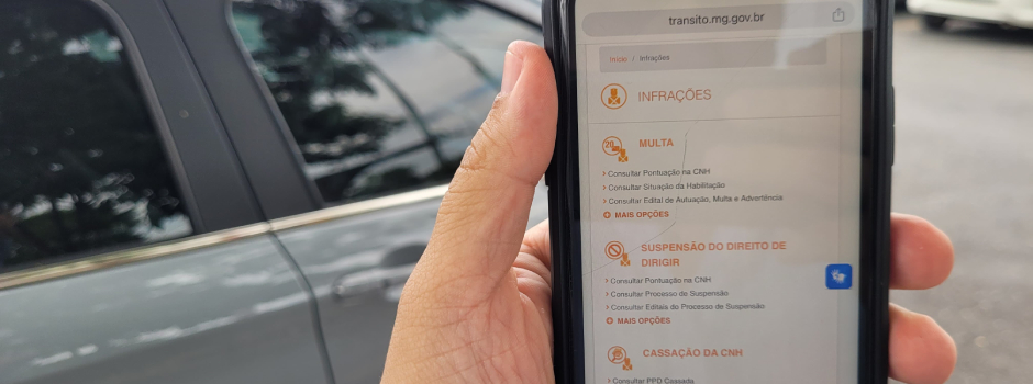 Na página de Multas, o cidadão encontra todas as informações e serviços referentes às infrações de trânsito, especialmente as de competência da CET-MG. Na aba de suspensão do direito de dirigir, é possível conferir as informações e serviços referentes ao processo administrativo dos condutores registrados em Minas Gerais.