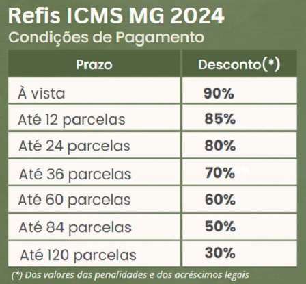 DA REDAÇÃO – Empresas com dívidas do Imposto sobre Circulação de Mercadorias e Serviços (ICMS) poderão negociar os débitos junto à Secretaria de Estado de Fazenda de Minas Gerais (SEF/MG) em condições especiais. Com prazo de adesão entre 1/4 e 21/6, o programa de regularização de débitos tributários, intitulado Refis ICMS MG 2024, foi publicado na última quarta-feira (27/3) pelo Governo de Minas, no Diário Oficial do Estado. As regras do programa estão dispostas no Decreto 48.790.