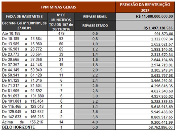 Confira abaixo os valores estimados para os municípios mineiros com a arrecadação, em 2017, com a repatriação.