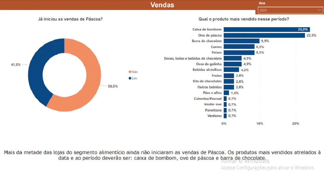 Até a finalização da pesquisa, 41,5% dos comerciantes impactados pela data, já haviam iniciado as vendas de Páscoa. De acordo com eles, os produtos com maior saída, serão: